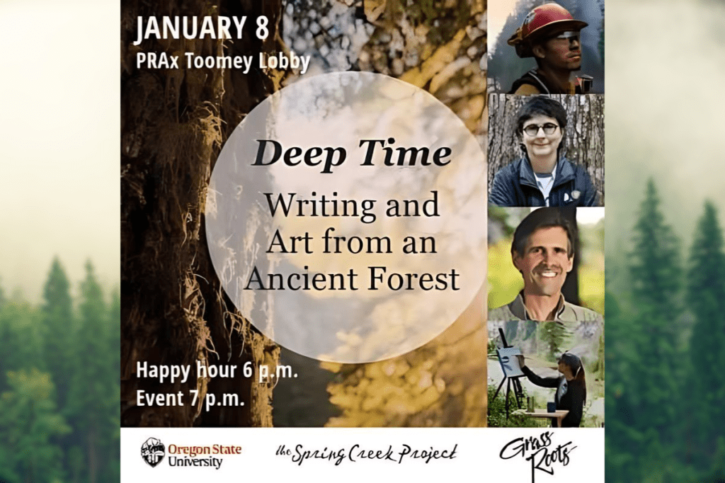 Jan. 8: 7:00-8:30. “Deep Time: Writing and Art from an Ancient Forest.” Reading/Lecture: PraX Center for the Creative Arts. Oregon State University. Corvallis, OR.
